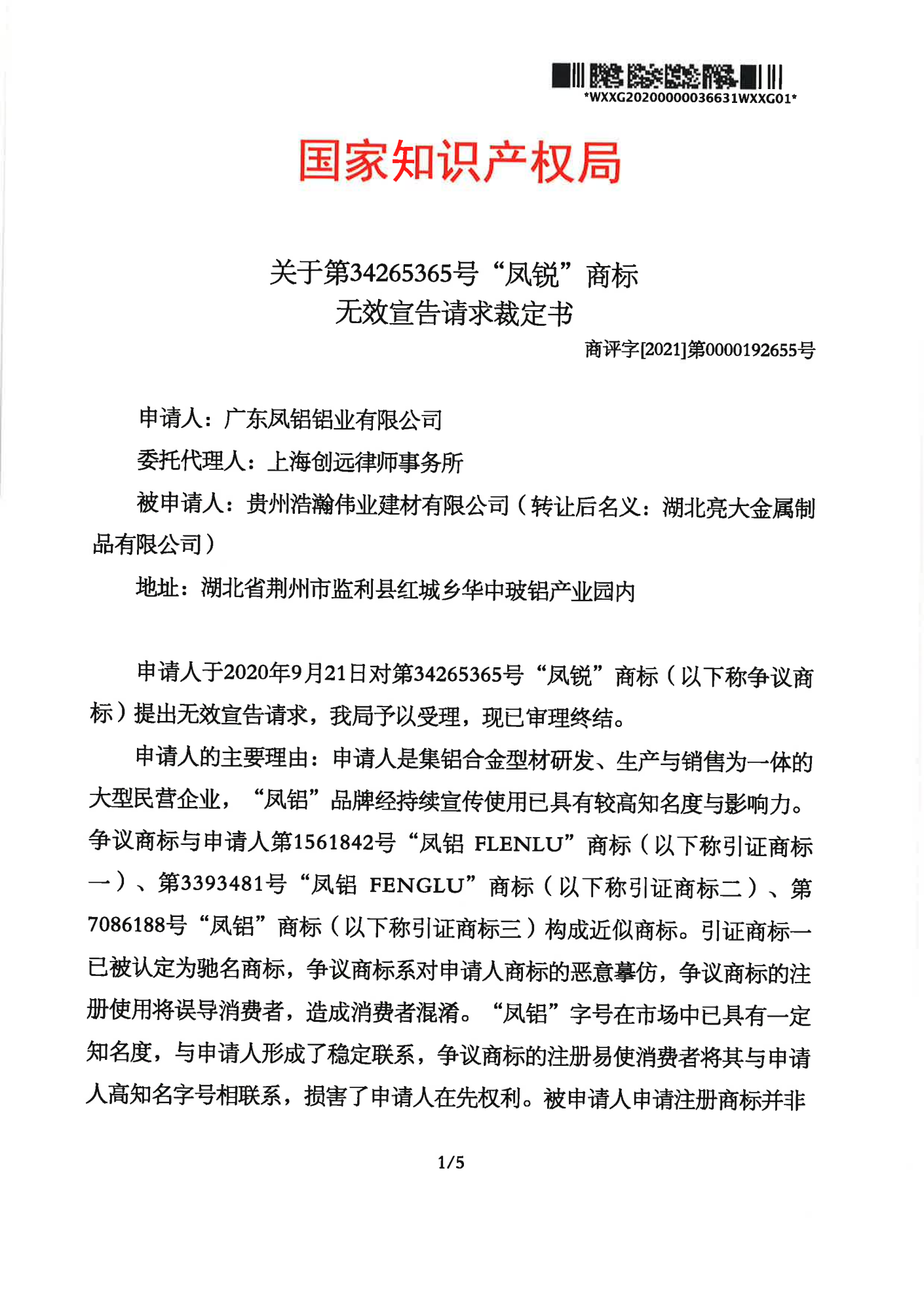 昆明辉知队 | 国家知识产权局:“凤锐”商标无效