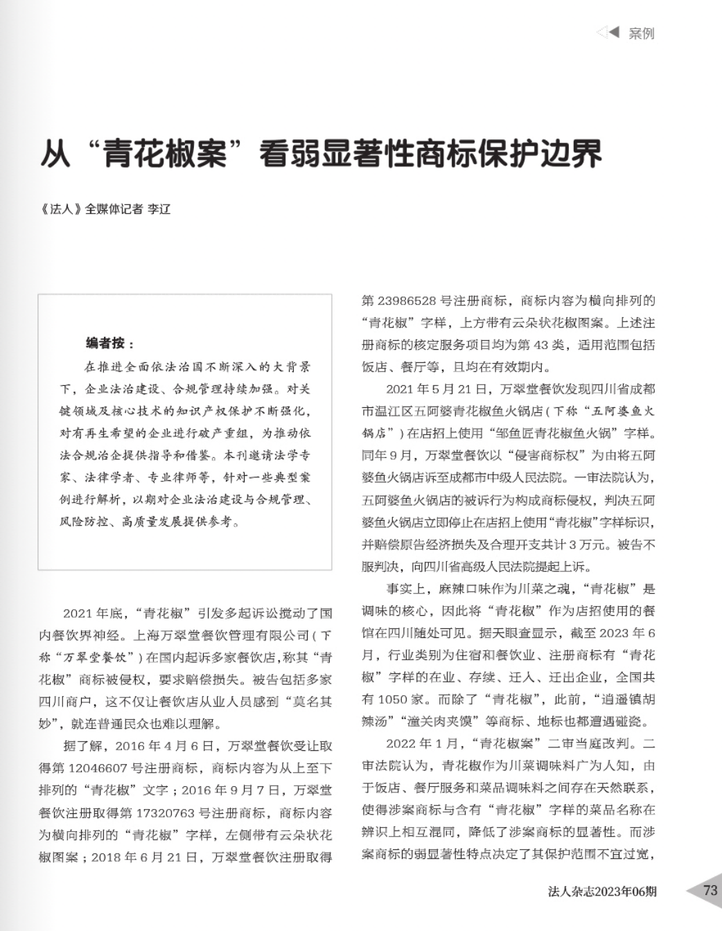 昆明辉知简讯 | 辉知队黄俊益律师应“法治日报”旗下杂志邀请,就“青花椒”案发表专家点评