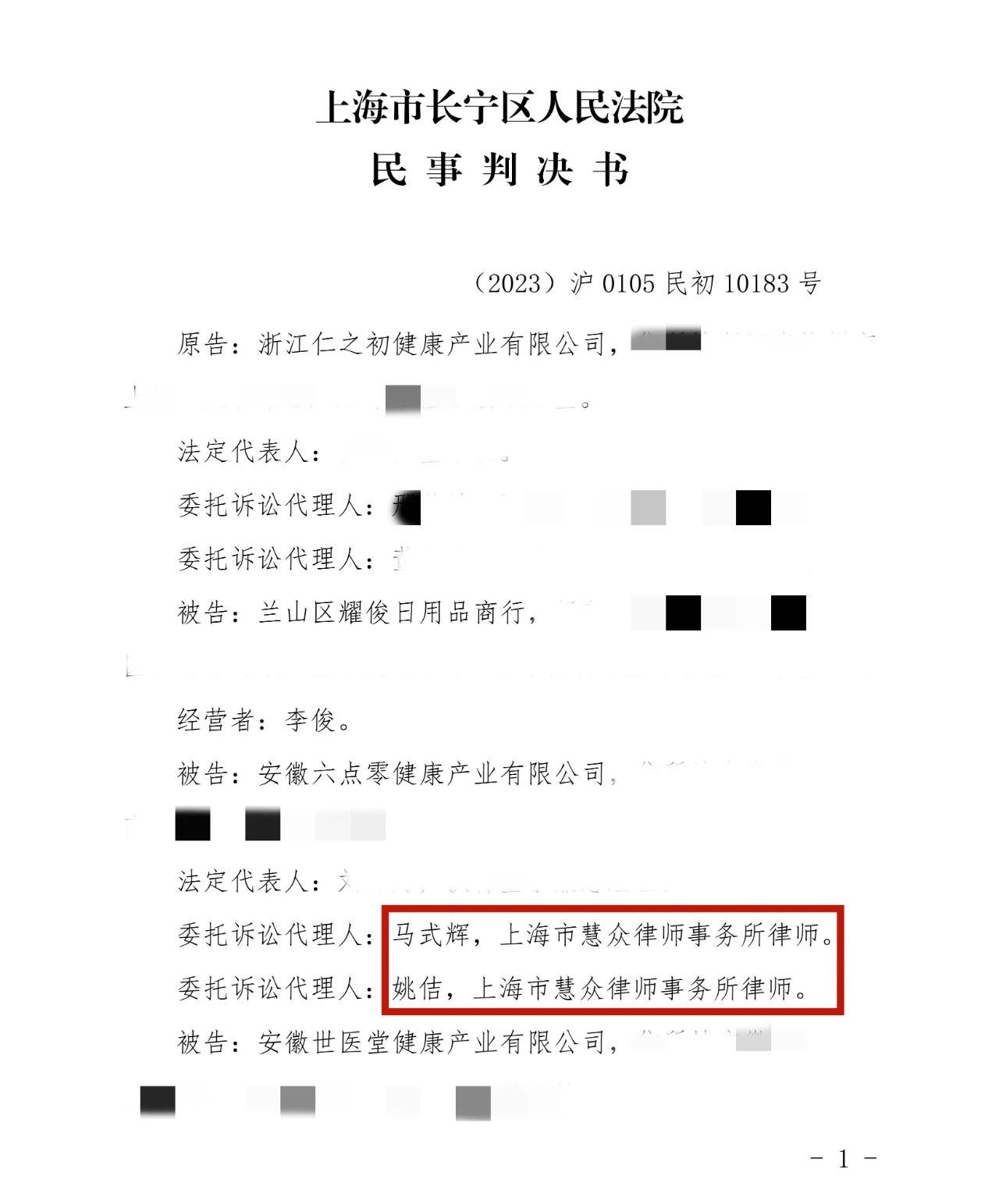原告浙江仁之初健康产业有限公司与被告兰山区耀俊日用品商行、安徽六点零健康产业有限公司、安徽世医堂健康产业有限公司、上海寻梦信息技术有限公司侵害著作权及不正当竞争纠纷一案现已审结。