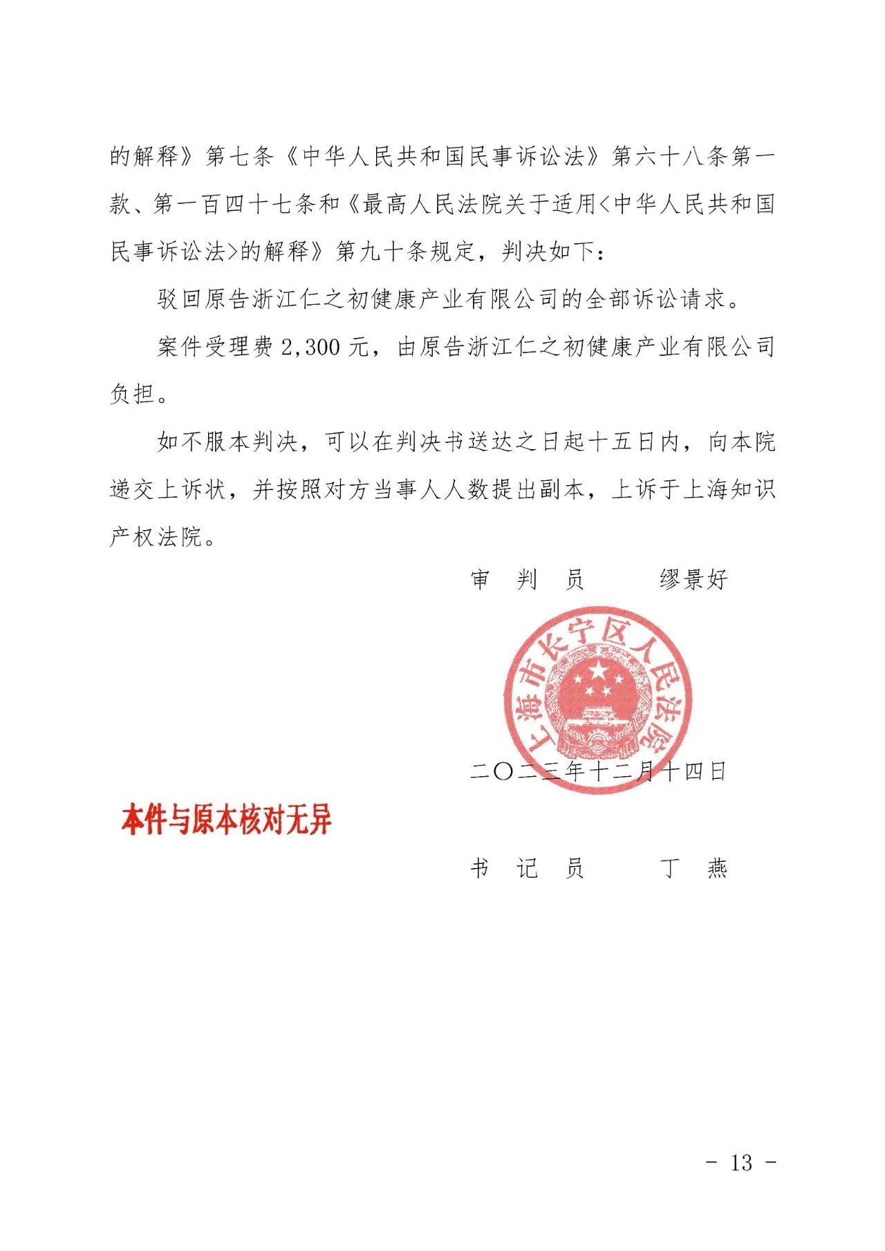 昆明辉知胜诉佳讯 | “仁之初健康”著作权及不正当竞争纠纷案,法院:驳回全部诉讼请求!